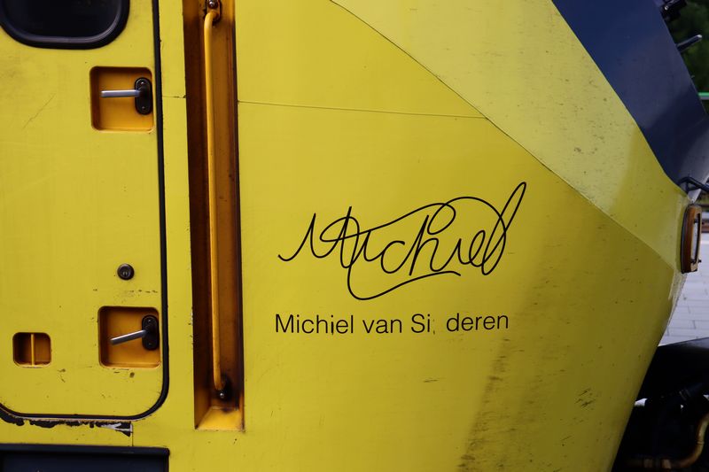 De naam en handtekening van één van de twee ontwerpers van het uitfit van de trein: Steffen de Jonge. |