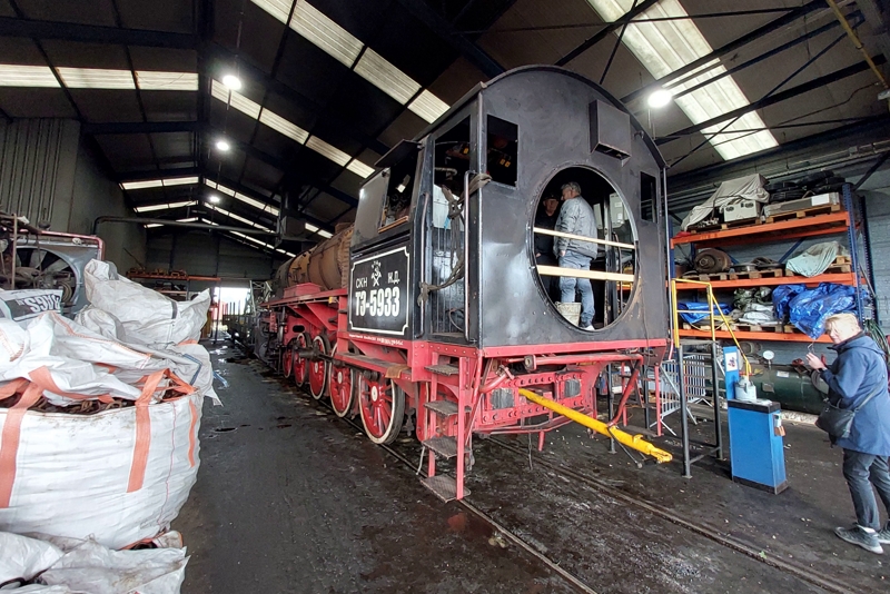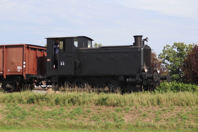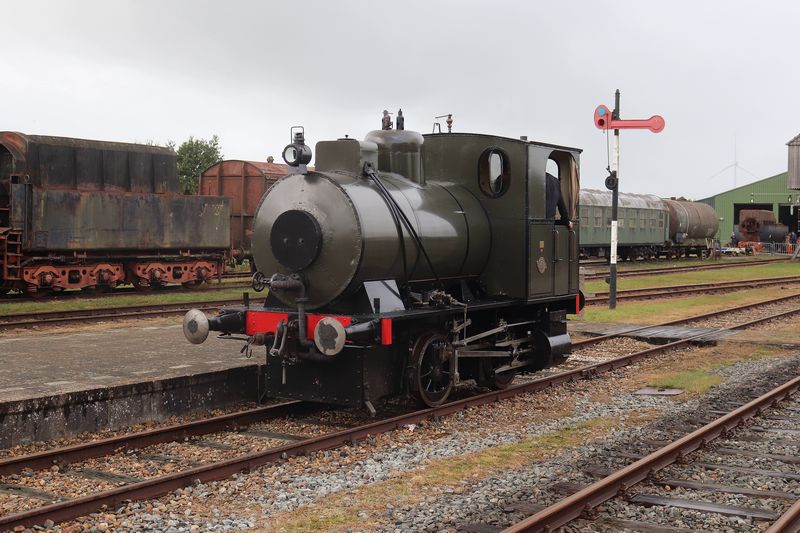 Bij de loods stond een bijzondere Sik opgesteld, de NS 203 uit 1934. De Museumspoorlijn STAR kreeg in de NS 203 in augustus 2022 geschonken van het bedrijf Steinweg Handelsveem uit Rotterdam. Hiermee bezit de STAR de derde Sik die ooit gebouwd is. De 201 en 202 zijn gesloopt, waarmee de 203 de oudste bewaarde Sik is. De STAR zal de 203 gaan restaureren en zijn donkergroene kleur weer teruggeven, waarmee de locomotief in 1934 geleverd werd. Naast de NS 203 staat een 69 jaar jondere rangeerloc, de 111001 van HappyTrain. In 2003 werd de locomotief gebouwd voor NS / Nedtrain. |