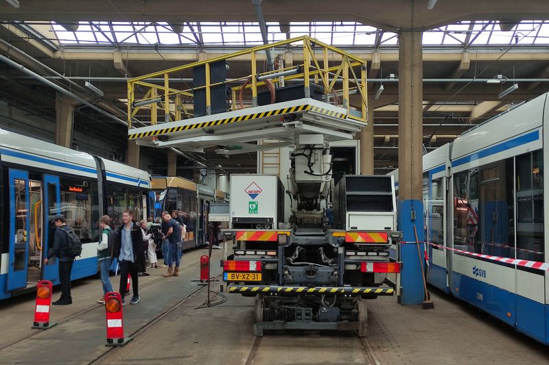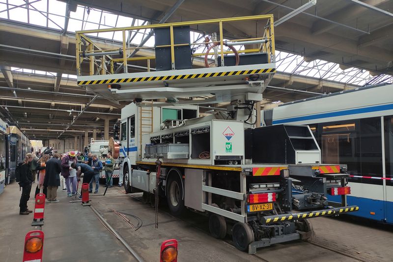 AMSTERDAM - Op zaterdag 11 oktober heeft het GVB de deuren van haar tramremise aan de Havenstraat open gezet voor publiek. Bezoekers konden een bezoek brengen aan de tramsimulator, een kijkje nemen in de tramwerkplaats, diverse werk- en onderhoudsvoertuigen bekijken, een reactie-test doen en diverse trams bekijken en dat alles onder het genot van een bakje koffie of thee.