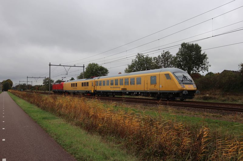 17-10-2025 / 19.00 uur Het is niet de eerste keer dat we een Duitse meettrein in Nederland vastleggen, op 9 april 2024 en op 14 juni 2023 deden we dat ook al. |