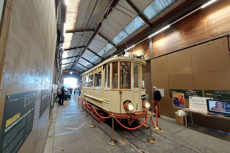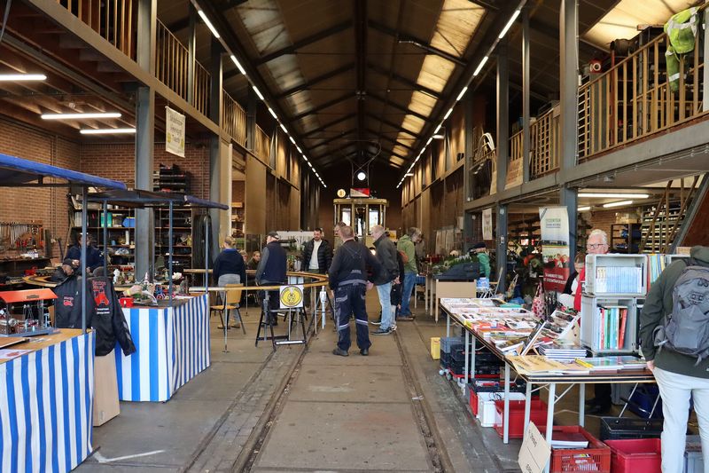 In de loods in Haaksbergen waren een aantal kraampjes en de prachtig gerestaureerde tram TET 1 te zien. |