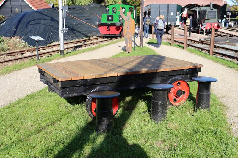 Op de achtergrond staan de Oersik 125 en kolenwagon Staatsmijnen 91. De Oersik en de kolenwagon zijn onderdeel van de expositie ‘Het zwarte goud’ over de rol van steenkool bij de ontwikkeling van Twente. |