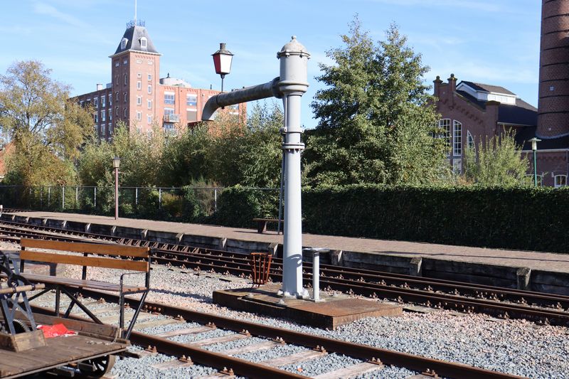 Ook in Boekelo kunnen de stoomlocomotieven voorzien worden van water doormiddel van deze waterkolom. |