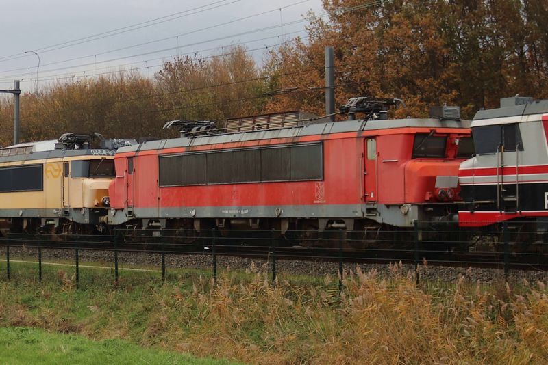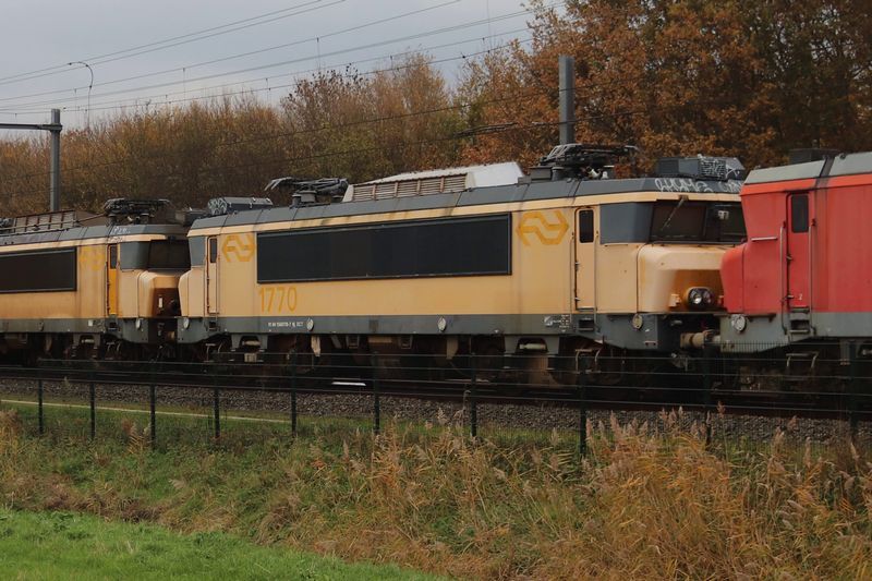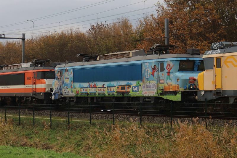 RXP 9901 (ex-NS 1627) met daarachter de hele rits locomotieven. |