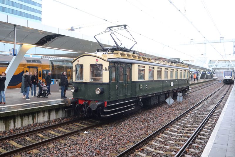 het eerste Centraal Station buiten de Randstad werd. Stroopwafels en Blokkendoos "Jaap" In samenwerking met het Stoomgenootschap konden reizigers in een oude trein een ritje maken. Speciaal voor deze dag reed Blokkendoos "Jaap" (Mat ’24) van de 2454 CREW tussen 10:00 en 15:00 uur drie keer op en neer tussen Arnhem en Wolfheze. Geoffrey Brookman, stationsmanager Arnhem Centraal: "Het bijzondere aan Arnhem Centraal: terwijl de stad Arnhem op een helling ligt vanaf de Veluwe naar de Rijn, merk je de hoogteverschillen alleen op de perrons en bij de Sonsbeekzijde uitgang. Daar moet je de trap of ligt gebruiken, terwijl in de tunnel en OV-terminal alles vloeiend is gemaakt." De totstandkoming Eind jaren ’90 besloot men dat er een nieuw station moest komen om ook in de toekomst aan de wensen te blijven voldoen. Het kenmerkende koepelgebouw bij de Sonsbeekzijde van het oude station is verplaatst naar park Presikhaaf, waar het fungeert als theehuis. In 1997 ontwierp architect Ben van Berkel, ook bekend van de Erasmusbrug, het Arnhem Centraal zoals we dat nu kennen: een futuristisch station met alle vervoerders onder één dak in een gezamenlijk OV-terminal. Een zeer ambitieus plan dat uiteindelijk door veel obstakels, zoals de financiële crisis en uitdagend ontwerpplan voor ontwikkelaars, pas bijna 19 jaar later in gebruik genomen werd. Het Arnhem Centraal van 2025 Voor alle foto's en filmbeelden geldt: © TreinenInNederland.nl |