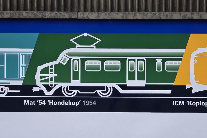De laatste trein op de NVBS 1931, die tijdens de wederopbouw werd geleverd, zijn de iconische Hondekoppen. Tijdens de wederopbouw had de Nederlandsche Spoorwegen nieuw materieel nodig voor de treindienst op de spoorlijnen die net geëlektrificeerd werden. Tevens moesten de oude treinen van het type Mat'24 worden vervangen. De Nederlandse treinenbouwers Allan te Rotterdam, Beijnes te Haarlem en Werkspoor te Utrecht bouwden tussen 1956 en 1962 68 tweedelige en 73 vierdelige treinstellen. De Mat'54 heeft als eerste serie sinds de introductie van het gestroomlijnde ontwerp, met de komst van de Mat'34-stellen in 1934, een geheel nieuw ontwerp gekregen. De treinstellen kregen een grote neus, waardoor de machinist beter is beschermd mocht er een aanrijding plaatsvinden. Door hun karakteristieke neus kregen de Mat'54-treinstellen al snel de bijnaam Hondekop. Tegenwoordig zijn twee groene Hondekoppen bewaard. De tweedelige 386 van het Spoorwegmuseum en de vierdelige 766 van Stichting Hondekop. |