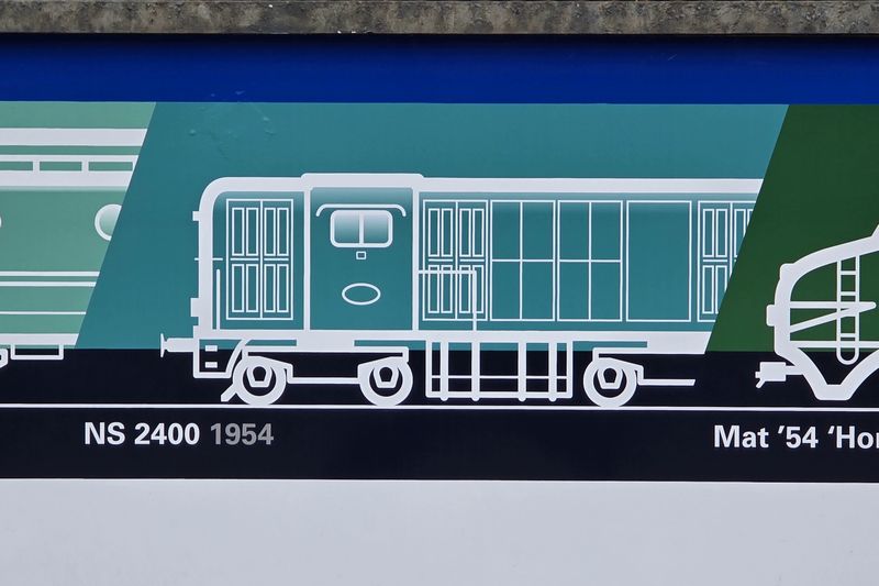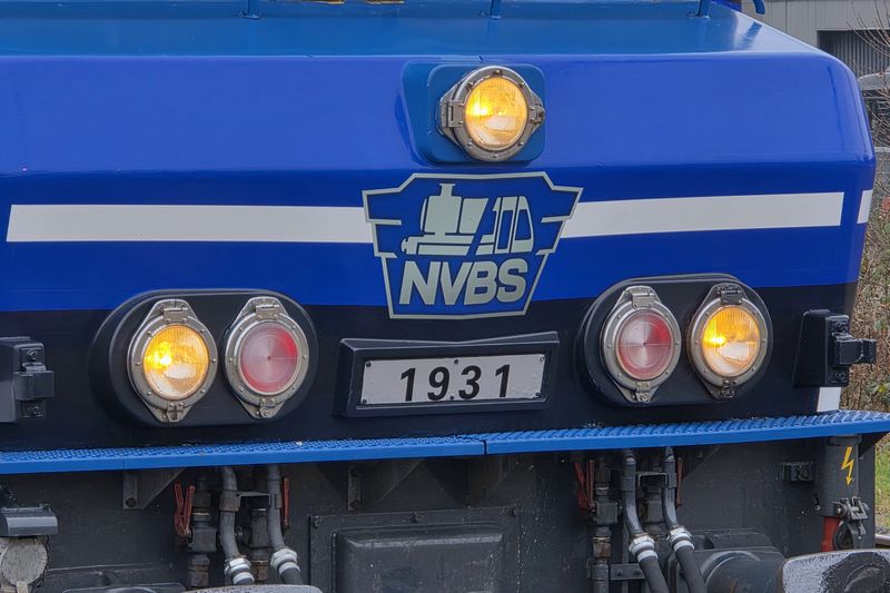 De 1831 van Rail Force One werd uitgekozen om te worden voorzien van de NVBS-huisstijl. De keuze viel op de 43 jaar oude locomotief, omdat de 1831 nog de enige dienstvaardige Nez Cassé is die dienstdoet in het uiterlijk van de vorige vervoerder. De 1831 reed namelijk nog in de oude huisstijl van het in 2017 failliet verklaarde Locon. Hier deed de locomotief dienst onder het nummer 9904. Dit is niet de eerste keer dat de NVBS een locomotief voorziet van bestickering ter ere van haar eigen jubileum. Vijftien jaar geleden bestond de NVBS in 2011 80 jaar en toen werd ook besloten om een locomotief te bestickeren. Toen kreeg de 1254, die op dat moment dienstdeed voor EETC, reclame van de NVBS. Op de ene zijkant werd toen een exemplaar van het blad 'Op de Rails' getoond en op de andere kant het logo van de NVBS. Het blad 'Op de Rails' brengt de NVBS maandelijks uit. Hoewel de 1254 toen ook NVBS-bestickering kreeg, werd de 1831 nu geheel voorzien van de huisstijl van de NVBS. Terwijl achter de schermen druk werd gewerkt aan de grote verrassing, werd op 18 november 2025 de eerste aankondiging door de NVBS gedaan. De jaarlijkse oliebollenrit die altijd in december rijdt, werd dit jaar iets uitgesteld tot begin januari volgend jaar. Zo valt de rit in het begin van het 95ste jubileumjaar van de NVBS. Volgens de aankondiging zou de rit op 3 januari 2026 gereden worden door de Railexperts 9902 'Tommie en Tess' en een verrassingslocomotief met het nummer 951 931. Het nummer 951 931 is opgemaakt uit 95, het aantal jaren dat de NVBS bestaat, en het jaartal dat de NVBS is opgericht: 1931. De verrassingslocomotief werd omschreven als 'een geheel nieuwe verschijning op het Nederlandse spoor'. Gisteren, 12 december 2025, werd bekendgemaakt wat deze verrassingslocomotief 951 931 is. De 1831 werd bij de Stoom Stichting Nederland gepresenteerd in haar nieuwe NVBS-uiterlijk. De locomotief was geheel donkerblauw gemaakt, met op de zijkant groot het getal 95 en het nieuwe logo van de NVBS. Doordat het nummer van de locomotief 1831 is, kon dit met een kleine aanpassing worden veranderd naar 1931. Dit benadrukt het jaar waarin de NVBS is opgericht. Op de zijkant van de locomotief zijn twaalf treinen te zien die belangrijk waren voor de geschiedenis van treinen in Nederland. Op de zijkant van de 1931 zijn van links naar rechts de Arend uit 1839, SS 300 'Grote Groene' uit 1880, SS 700 'Jumbo' uit 1910, Mat'24 'Blokkendoos' uit 1924, Mat'34 'Diesel III' uit 1934, NS 1200 uit 1952, NS 1300 uit 1952, NS 2400 uit 1954, Mat'54 'Hondekop' uit 1954, ICM 'Koploper' uit 1977, VIRM 'Regiorunner' uit 1994 en als laatste de nieuwste trein van NS, ICNG uit 2023. Een dag na de presentatie werd de RFO / NVBS 1931 weer ingezet in de goederendienst en was de nieuw bestickerde locomotief voor het eerst op de baan te zien. De locomotief reed met een schuifwandwagentrein vanuit de Kijfhoek via Rotterdam, Breukelen, Weesp, Amersfoort, Deventer naar Bad Bentheim. Wij hebben de vers bestickerde 1931 tijdens zijn eerste commerciële inzet op de foto en film vastgelegd. Voor alle foto- en filmbeelden geldt: © TreinenInNederland.nl |