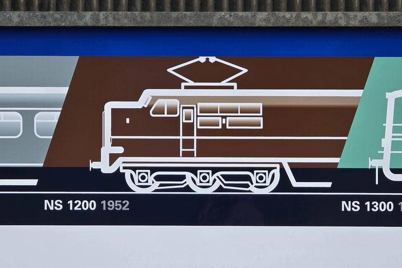 Na de Tweede Wereldoorlog herstelde de Nederlandse economie snel. Hierdoor kon Nederland, deels met het Amerikaanse Marshallplan, in de wederopbouw veel nieuw spoorwegmaterieel aanschaffen. Doordat de treinen en de infrastructuur heel ernstig waren beschadigd, werd besloten om tijdens het herstel grote stappen te maken in het moderniseren van het spoorwegnet. Grote delen van het spoor werden geëlektrificeerd en het materieelpark werd flink gemoderniseerd met de komst van veel nieuw materieel. Met de enorme modernisering wilde de Nederlandsche Spoorwegen in de jaren '50 stoomlocomotieven en houten rijtuigen buitendienst stellen. De volgende vier treinen op de tijdlijn van de NVBS 1931 werden in deze periode geleverd: de elektrische 1200, de elektrische 1300, de diesellocomotievenserie 2400 en de elektrische treinstellen Mat'54. De Nederlandsche Spoorwegen gaf in 1948 de opdracht voor de bouw van 25 elektrische locomotieven. Het ontwerp van de locomotieven is gebasseerd op locomotieven van de treinenfabriek Baldwin Locomotive Works uit Philadelphia en de elektrische installatie werd door Westinghouse Electric Company in New York ontworpen. Het opvallendste aan het ontwerp van de locomotieven is de erg grote botsneus die de machinist bij ongelukken beschermde. De grote neus werd door ontwerper Raymond Loewy bij de Baldwin Locomotive Works vaak toegepast op Amerikaanse locomotieven. De eerste helft van de locomotieven, de 1201 t/m 1214, werden net als de andere nieuwe elektrische locomotieven en rijtuigen in het turkoois geleverd. De andere 1200'en werden, net als de diesellocomotieven van de series 2200 en 2400, geleverd in een bruine kleur. Er zijn gelukkig meerdere iconische 1200'en bewaard. Op 12 november 2011 organiseerde de NVBS zelfs een grote 1200-dag. Er is één locomotief bewaard in de bruine huisstijl, zoals op de NVBS 1931 te zien is. En dat is de 1218, deze locomotief is te zien bij de Stoomtrein Goes - Borsele. |