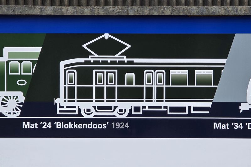 Na de oprichting van het samenwerkingsverband Nederlandsche Spoorwegen, in 1917, werkte NS hard om de dure stoomlocomotieven te vervangen. Tussen 1923 en 1932 liet NS in totaal 261 rijtuigen bouwen van de serie Mat'24. De serie bestond uit 130 motorrijtuigen en 131 tussenrijtuigen. De 'Blokkendozen' waren niet de eerste elektrische treinen in Nederland. Tussen 1908 en 1914 liet de Zuid-Hollandsche Electrische Spoorweg-Maatschappij (ZHESM) 23 motorrijtuigen en 9 tussenrijtuigen bouwen voor dienst op de Hofpleinlijn. De Mat'24-treinen waren deels van staal en deels van hout gemaakt. De treinen kregen de (versimpelde) olijfgroen/crème-huisstijl van het eerdere ZHESM-materieel. Vanaf eind jaren '20 werd de olijfgroen/crème-huisstijl vervangen door geheel donkergroen. Tegenwoordig hebben meerdere spoorwegmusea Blokkendozen in hun collectie. De mC 9002, van de Stichting 2454 CREW, is de enige rijvaardige motorwagen die de originele olijfgroen/crème-huisstijl draagt. Het Spoorwegmuseum heeft een driedelige donkergroene stam bestaande uit de rijtuigen BD 9107, C 8553 en de C 8104 in zijn collectie. De NVBS koos ervoor om niet de Hofpleintrein, maar de Mat'24 op de NVBS 1931 te plaatsen, doordat de Blokkendozen bekender zijn. |