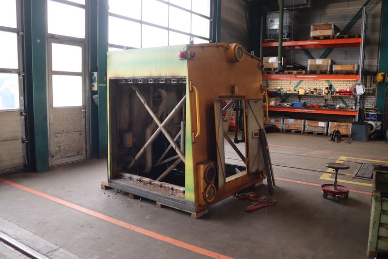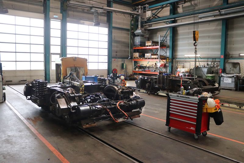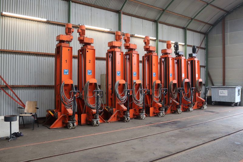 De werkplaats beschikt over 8 hefbokken die elk 25 ton kunnen tillen.