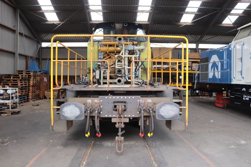 De neus van een V100 van een derde partij die momenteel onderhoud krijgt in de werkplaats van VolkerRail.