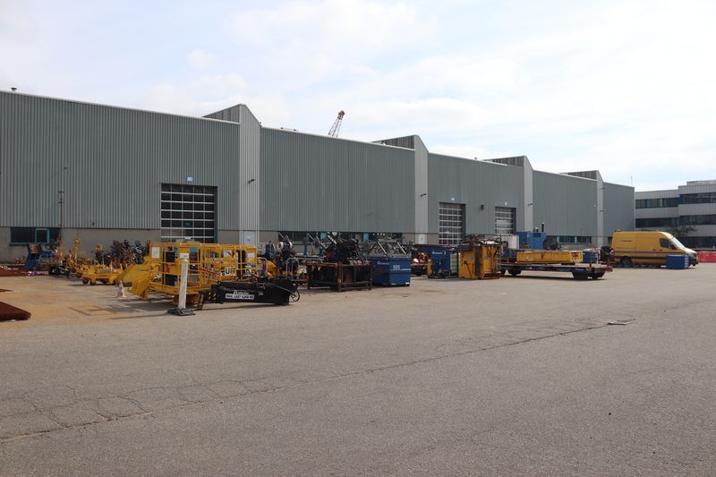 De werkplaats van VolkerRail in Dordrecht. In de hal staat de nieuwe meettrein van VolkerRail: Enola Holmes.