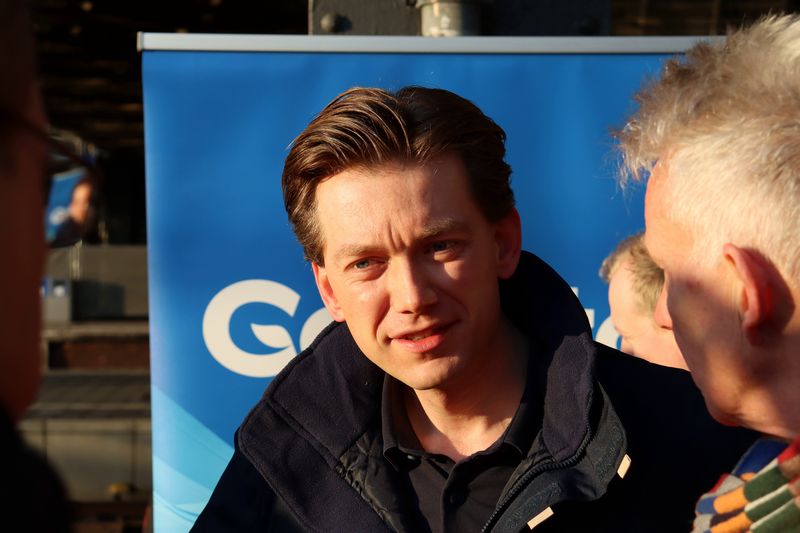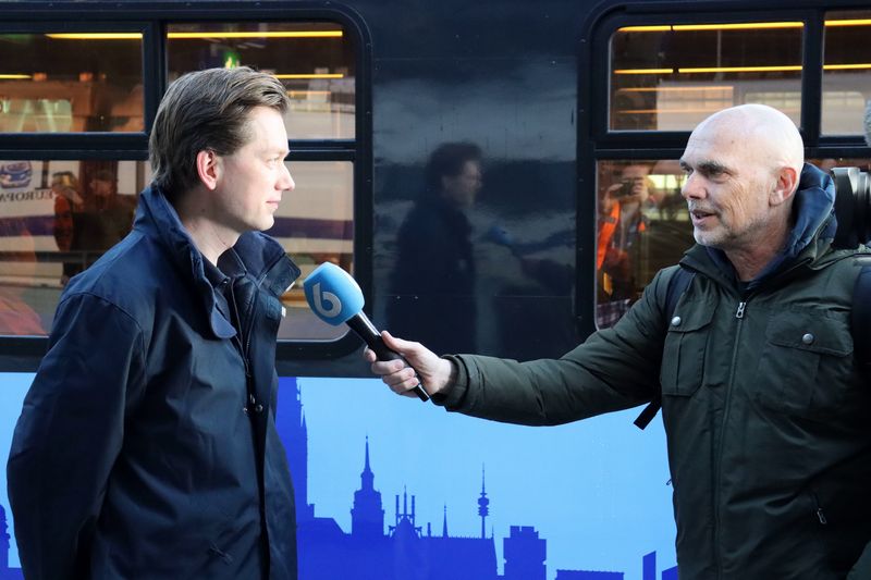 Medeoprichter van GoVolta Maarten Bastian wordt geïnterviewd door een verslaggever van AFP.