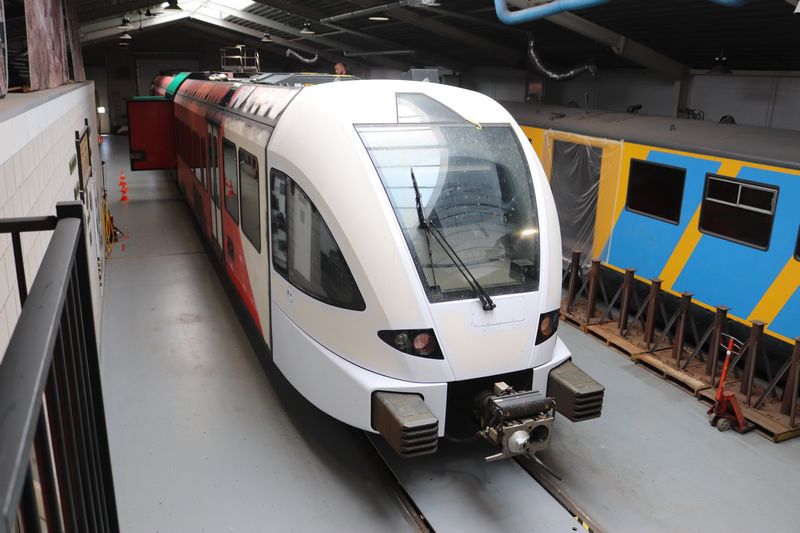 Men is druk bezig met het bestickeren van de GTW in de nieuwe RRReis-kleurstelling. |