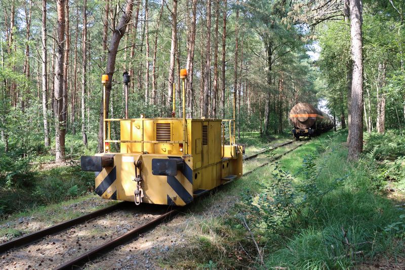 De KRS-50-D komt bij KLK Kolb in Delden de poort uit rijden terwijl de DB Cargo 6412 een paar ketelwagons het terrein af duwt. Eerder heeft de 6400 de keteltrein aangebracht vanuit Bad Bentheim. 13 augustus 2025. © TreinenInNederland.nl |