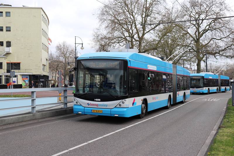 Brengtrolley 5266 rijdt over het Willemsplein in Arnhem. 30 maart 2022. © OVnieuws.info |