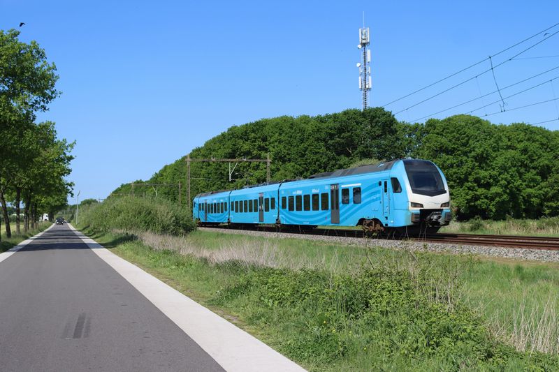 De Keolis 5039 rijdt ter hoogte van Terschuur richting Barneveld. 3 mei 2025. © TreinenInNederland.nl |
