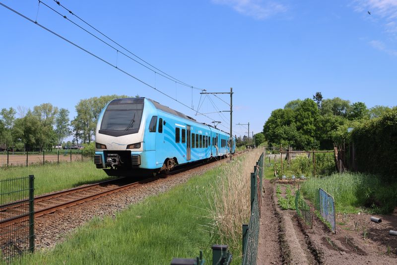 De Keolis 5039 rijdt ter hoogte van de Zonneoordlaan naar Ede-Wageningen. 3 mei 2025. © TreinenInNederland.nl |