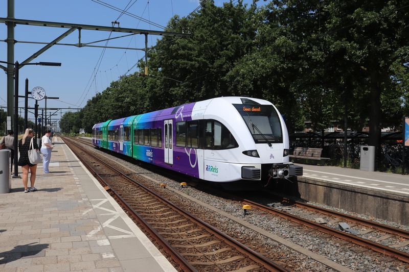 De 372 en 374 rijden door Zevenaar richting Winterswijk. Dit was de eerste rit dat er twee RRReis-treinstellen aan elkaar gecombineerd reden. 4 juni 2025. © TreinenInNederland.nl |