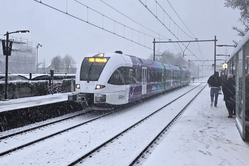 Arriva GTW 365 komt in de sneeuw station Duiven binnen gerold. 2 januari 2026. © TreinenInNederland.nl |