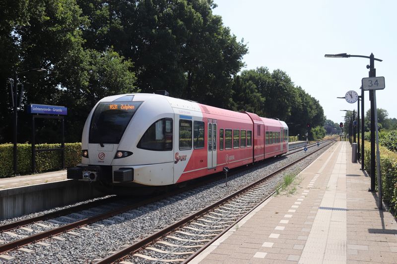 De 258 vertrekt uit Lichtenvoorde-Groenlo als stoptrein naar Zutphen. 27 juni 2025. © TreinenInNederland.nl |