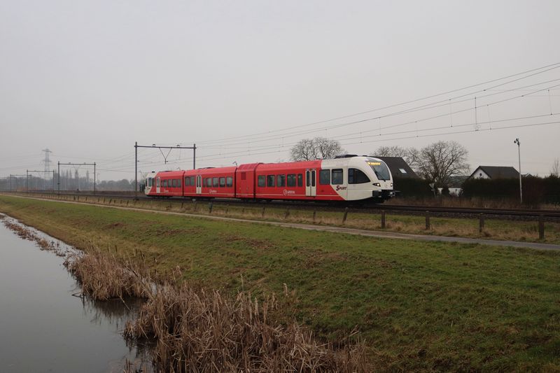 De 373 rijdt tussen Duiven en Zevenaar richting Winterswijk. 25 februari 2023. © TreinenInNederland.nl |