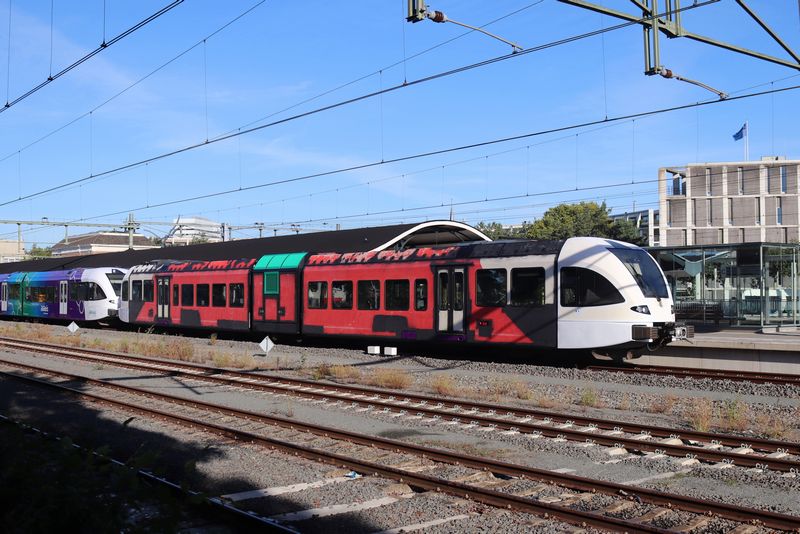 De geschuurde 255 en de RRReis 367 stoppen in Apeldoorn om even later via Deventer naar Zutphen te rijden. 7 september 2025. © TreinenInNederland.nl |