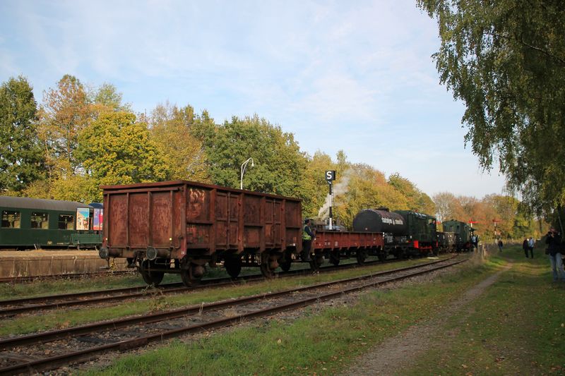De Sik 248 rangeert met een goederentrein met daarin onder andere de NS 01 84 552 2 032-9. End of Season Gala 2018, 20 oktober 2018. © TreinenInNederland.nl |