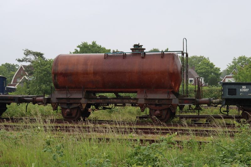 De Akzo ketelwagon 23 84 737 5 545-8 staat bij de Museumspoorlijn STAR in Stadskanaal opgesteld. Nationale Stoomtreindag 2025 bij de Museumspoorlijn STAR, 29 mei 2025. © TreinenInNederland.nl |