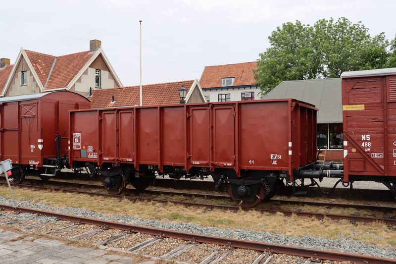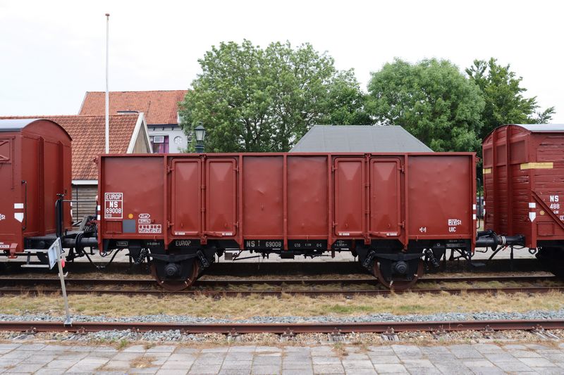 Na de Tweede Wereldoorlog herstelde de Nederlandse economie snel. Hierdoor kon Nederland, deels met het Amerikaanse Marshallplan, in de wederopbouw veel nieuw spoorwegmaterieel aanschaffen. Doordat de treinen en de infrastructuur heel ernstig waren beschadigd, werd besloten om tijdens het herstel grote stappen te maken in het moderniseren van het spoorwegnet. Grote delen van het spoor werden geëlektrificeerd en het materieelpark werd flink gemoderniseerd met de komst van veel nieuw materieel. Met de enorme modernisering wilde de Nederlandsche Spoorwegen in de jaren '50 stoomlocomotieven en houten rijtuigen buitendienst stellen. Een stoomlocomotief moet uren van tevoren al worden opgestookt voordat de machine kan worden ingezet. Naast kolen en water kost dit ook veel loon voor het personeel; op stoomlocomotieven moet namelijk ook een stoker aanwezig zijn. Houten rijtuigen zijn bij aanrijdingen onveiliger, omdat het hout veel minder sterk is, waardoor de rijtuigen volledig kunnen versplinteren. Tevens wilde NS het, meestal slecht presterende, materieel dat na de oorlog uit legerdumps en elders uit Europa werd gekocht of gehuurd snel vervangen. In de jaren na de oorlog bestelde NS, tot en met 1959, 173 dieselrangeerlocomotieven (de series 200, 450, 500, 600 en 700), 286 diesellocomotieven voor op de hoofdbaan (de series 2200, 2400 en 2600, de 2600'en werden in 1958 al aan de kant gezet), 100 elektrische locomotieven (de series 1100, 1200 en 1300), 311 rijtuigen (de series Plan-D, Plan-E, Plan-K en Plan-N), 48 postrijtuigen (de series Pec, Plan-C, Plan-E en Plan-L), twee fietsrijtuigen (Dec-rijtuigen, de rijtuigen werden na één jaar omgebouwd naar Pec-postrijtuigen), 297 elektrische treinstellen (de series Mat'46, Mat'54 en Mat'57), 81 dieseltreinstellen (de series Plan-X en TEE DE4) en meer dan tien duizend nieuwe goederenwagons. Door al het nieuwe materieel en het sluiten van tramlijnen nam NS in 1955 afscheid van de laatste stoomtram. Op 31 augustus 1955 reed de NS 7742 'Bello' als laatste NS-stoomtram van Bergen aan Zee naar Alkmaar. Een jaar later nam NS op 16 juni 1956 afscheid van de laatste houten rijtuigen. Op 7 januari 1958 reed de NS 3737 als laatste stoomtrein, in dienst van de Nederlandsche Spoorwegen, van Geldermalsen naar het Spoorwegmuseum in Utrecht. Nederland was een van de eerste landen in Europa waar stoomlocomotieven en houten rijtuigen niet meer op het hoofdnet gebruikt werden. Op de grensbaanvakken met Duitsland waren echter tot in de jaren '70 nog Duitse stoomlocomotieven te zien. Bij Nederlandse industrieën rangeerden stoomlocomotieven nog veel langer door. In 1975 werden de LV 13 en LV 14 (de oude NS 8811 en 8826) als laatste stoomlocomotieven in commerciële dienst in Nederland terzijde gesteld na het sluiten van de laatste steenkolenmijnen in Zuid-Limburg een jaar eerder. In de jaren '50 besloot NS om duizenden nieuwe opengoederenwagons te bestellen. Er werd gekozen voor een Europees standaardtype goederenwagons. Tussen 1954 en 1959 werden 2600 bruine goederenwagons van de serie gebouwd. De wagons kregen de typeaanduidingen GTO en GTOW. De wagons lijken veel op de oudere serie stalen opengoederenwagons, waarvan de GTUW NS 65248 is bewaard. De nieuwe wagons hadden een draagvermogen van 28 ton, in tegenstelling tot het draagvermogen van 20 ton van de oudere wagons. De GTO en GTOW werden voor vele soorten goederenvervoer gebruikt. Bekende inzetten van de wagons zijn in het bieten- en kolenvervoer. Begin jaren '80 werden de typeaanduidingen GTO en GTOW van de wagons vervangen door E. Door de sterke opkomst van de vrachtwagens in de jaren '60 liep het goederenvervoer per spoor terug en sloten veel los- en laadplaatsen. Ook werd sinds de ontdekking van het aardgasveld onder Groningen in 1959 steenkool steeds minder gebruikt, waardoor het aantal kolentreinen sterk terugliep. Hierdoor werd een deel van de opengoederenwagons overbodig en terzijde gesteld. De laatste goederenwagons van de serie werden in de jaren '90 terzijde gesteld. |