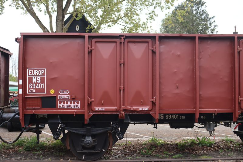 Na de Tweede Wereldoorlog herstelde de Nederlandse economie snel. Hierdoor kon Nederland, deels met het Amerikaanse Marshallplan, in de wederopbouw veel nieuw spoorwegmaterieel aanschaffen. Doordat de treinen en de infrastructuur heel ernstig waren beschadigd, werd besloten om tijdens het herstel grote stappen te maken in het moderniseren van het spoorwegnet. Grote delen van het spoor werden geëlektrificeerd en het materieelpark werd flink gemoderniseerd met de komst van veel nieuw materieel. Met de enorme modernisering wilde de Nederlandsche Spoorwegen in de jaren '50 stoomlocomotieven en houten rijtuigen buitendienst stellen. Een stoomlocomotief moet uren van tevoren al worden opgestookt voordat de machine kan worden ingezet. Naast kolen en water kost dit ook veel loon voor het personeel; op stoomlocomotieven moet namelijk ook een stoker aanwezig zijn. Houten rijtuigen zijn bij aanrijdingen onveiliger, omdat het hout veel minder sterk is, waardoor de rijtuigen volledig kunnen versplinteren. Tevens wilde NS het, meestal slecht presterende, materieel dat na de oorlog uit legerdumps en elders uit Europa werd gekocht of gehuurd snel vervangen. In de jaren na de oorlog bestelde NS, tot en met 1959, 173 dieselrangeerlocomotieven (de series 200, 450, 500, 600 en 700), 286 diesellocomotieven voor op de hoofdbaan (de series 2200, 2400 en 2600, de 2600'en werden in 1958 al aan de kant gezet), 100 elektrische locomotieven (de series 1100, 1200 en 1300), 311 rijtuigen (de series Plan-D, Plan-E, Plan-K en Plan-N), 48 postrijtuigen (de series Pec, Plan-C, Plan-E en Plan-L), twee fietsrijtuigen (Dec-rijtuigen, de rijtuigen werden na één jaar omgebouwd naar Pec-postrijtuigen), 297 elektrische treinstellen (de series Mat'46, Mat'54 en Mat'57), 81 dieseltreinstellen (de series Plan-X en TEE DE4) en meer dan tien duizend nieuwe goederenwagons. Door al het nieuwe materieel en het sluiten van tramlijnen nam NS in 1955 afscheid van de laatste stoomtram. Op 31 augustus 1955 reed de NS 7742 'Bello' als laatste NS-stoomtram van Bergen aan Zee naar Alkmaar. Een jaar later nam NS op 16 juni 1956 afscheid van de laatste houten rijtuigen. Op 7 januari 1958 reed de NS 3737 als laatste stoomtrein, in dienst van de Nederlandsche Spoorwegen, van Geldermalsen naar het Spoorwegmuseum in Utrecht. Nederland was een van de eerste landen in Europa waar stoomlocomotieven en houten rijtuigen niet meer op het hoofdnet gebruikt werden. Op de grensbaanvakken met Duitsland waren echter tot in de jaren '70 nog Duitse stoomlocomotieven te zien. Bij Nederlandse industrieën rangeerden stoomlocomotieven nog veel langer door. In 1975 werden de LV 13 en LV 14 (de oude NS 8811 en 8826) als laatste stoomlocomotieven in commerciële dienst in Nederland terzijde gesteld na het sluiten van de laatste steenkolenmijnen in Zuid-Limburg een jaar eerder. In de jaren '50 besloot NS om duizenden nieuwe opengoederenwagons te bestellen. Er werd gekozen voor een Europees standaardtype goederenwagons. Tussen 1954 en 1959 werden 2600 bruine goederenwagons van de serie gebouwd. De wagons kregen de typeaanduidingen GTO en GTOW. De wagons lijken veel op de oudere serie stalen opengoederenwagons, waarvan de GTUW NS 65248 is bewaard. De nieuwe wagons hadden een draagvermogen van 28 ton, in tegenstelling tot het draagvermogen van 20 ton van de oudere wagons. De GTO en GTOW werden voor vele soorten goederenvervoer gebruikt. Bekende inzetten van de wagons zijn in het bieten- en kolenvervoer. Begin jaren '80 werden de typeaanduidingen GTO en GTOW van de wagons vervangen door E. Door de sterke opkomst van de vrachtwagens in de jaren '60 liep het goederenvervoer per spoor terug en sloten veel los- en laadplaatsen. Ook werd sinds de ontdekking van het aardgasveld onder Groningen in 1959 steenkool steeds minder gebruikt, waardoor het aantal kolentreinen sterk terugliep. Hierdoor werd een deel van de opengoederenwagons overbodig en terzijde gesteld. De laatste goederenwagons van de serie werden in de jaren '90 terzijde gesteld. |