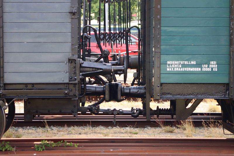 De NTM K9 en de E134 aan elkaar gekoppeld. Het spoorstoot- en trekwerk van de koppelwagen K9 zijn duidelijk te zien. 4 juli 2025. © TreinenInNederland.nl |