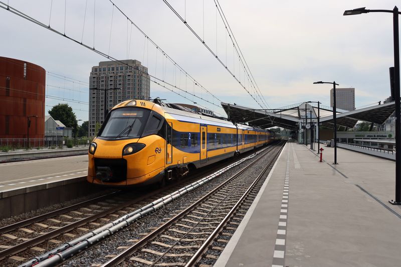 De ICNG 3110 is vanaf Amersfoort via Deventer naar Arnhem gereden. Deze foto toont de doorkomst van station Arnhem Velperpoort. 30 augustus 2023. © TreinenInNederland.nl |