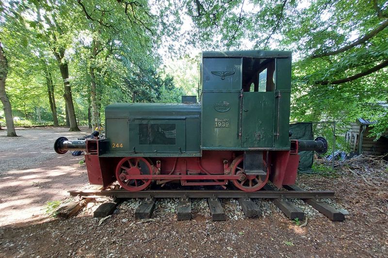 Twee dagen nadat Duitsland Polen binnenviel op 1 september 1939, riepen Engeland en Frankrijk de oorlog uit. Hiermee was de Tweede Wereldoorlog begonnen. Op 10 mei 1940 viel Duitsland het neutrale Nederland binnen. Vijf dagen later, toen de Duitsers na Rotterdam ook Utrecht dreigden te bombarderen, gaf Nederland zich over. Het vliegveld Deelen werd door de Duitsers sterk uitgebreid met 2000 hectare van Het Nationale Park De Hoge Veluwe. De Duitsers verbouwden vliegbasis Deelen tot een van de belangrijkste vliegvelden voor de Duitse Luftwaffe. Vanuit Fliegerhorst Deelen werd in de vluchtleidingsbunker Diogenes de luchtverdediging van het West-Europese luchtruim aangestuurd. Fliegerhorst Deelen was het grootste Duitse vliegveld in Nederland. De startbanen, hangars en bunkers op Fliegerhorst Deelen werden zo gebouwd en geschilderd dat het op een boerendorp leek. Om Fliegerhorst Deelen, en vooral vluchtleidingsbunker Diogenes, te kunnen bevoorraden, werd door het Duitse leger (Wehrmacht) vanaf begin juni 1941 tot aan half september een spoorlijn aangelegd die iets ten westen van station Wolfheze van de spoorlijn Utrecht - Arnhem aftakte naar Fliegerhorst Deelen. In september dat jaar werd de oplevering van de 13 kilometer lange spoorlijn door de bezetters gevierd. Op Fliegerhorst Deelen stonden rangeersporen, waaronder laad- en lossporen, over grote delen van het vliegveld. De spoorlijn werd gebruikt om bouwmaterialen, brandstof, munitie, vliegtuigonderdelen en V1 (Duitse onbemande straalvliegtuigen met explosieven) naar het vliegveld te brengen. De lijn kreeg de bijnaam het Bommenlijntje. De locomotieven die de Duitsers voor het vervoer over de lijn en het rangeerwerk op Fliegerhorst Deelen gebruikten, waren de Nederlandse rangeerlocomotieven NS 200 - 300 met de bijnaam 'Sik'. Voor grotere treinen werden andere (stoom)locomotieven ingezet. Het is onbekend of er ook andere rangeerlocomotieven over de spoorlijn hebben gereden. Ter voorbereiding van Operatie Market Garden, die in september 1944 plaatsvond, bombardeerden de geallieerden onder andere Fliegerhorst Deelen. Dit werd gedaan zodat de Duitsers de parachutisten moeilijker konden tegenhouden. De Fliegerhorst Deelen werd zwaar getroffen en de Duitse Luftwaffe verliet het vliegveld. De Operatie Market Garden duurde van 17 tot 26 september 1944. Op 5 mei 1945 werd het hele vaste land van Nederland bevrijd. Op deze datum wordt elk jaar de bevrijding van Nederland gevierd. Een dag eerder wordt tijdens de Nationale Dodenherdenking stilgestaan bij alle burgers en militairen die sinds het begin van de Tweede Wereldoorlog zijn omgekomen. Hoewel op 5 mei de bevrijding wordt gevierd, bleven de Nederlandse Waddeneilanden langer door de Duitsers bezet. Pas op 11 juni werden de laatste Waddeneilanden, als laatste stuk land van Europa, bevrijd. Na de oorlog werd het Bommenlijntje opgebroken, maar het baanlichaam is nog steeds duidelijk te zien. Het vliegveld Deelen werd als opslagplaats voor overtollig materieel gebruikt. In de jaren '50 ontstond het plan om Vliegveld Deelen weer in gebruik te nemen. De locomotievenloods die op het vliegveld stond, is bewaard gebleven. Na de oorlog werd het gebouw, samen met enkele andere bedrijven, omgebouwd tot boerderijen. Het gebouw wordt momenteel bewoond en is niet openbaar toegankelijk. Het Museum Vliegbasis Deelen heeft Sik 244 in haar collectie opgenomen, omdat dit loctype over het Bommenlijntje en Fliegerhorst Deelen heeft gereden. In 1939 bouwde fabrikant Deutz een dieselrangeerlocomotief van het type OMZ 122 R met het fabrieksnummer 26181. De locomotief werd geleverd aan Kühl- und Lagerhaus Bochum GmbH in Bochum (Duitsland). Waar de locomotief tijdens de Tweede Wereldoorlog heeft gerangeerd, is onbekend. De locomotief werd in 1971 verkocht aan Bison-Werke Bähre & Greten GmbH, in het Duitse Springe. De locomotief kreeg het nummer 3 reed in een oranje kleur. Het in Arnhem gevestigde Van Houtum Recycling kocht in 2022 de locomotief. In maart 2024 nam het Arnhems Oorlogsmuseum de Duitse locomotief, die in Arnhem stond, over. De donkergroene locomotief werd aan de voor- en zijkanten voorzien van de Wehrmacht-Adler. Volgens een bordje bij de Duitse rangeerlocomotief heeft hij tijdens de Tweede Wereldoorlog over het Bommenlijntje naar Fliegerhorst Deelen gereden. Maar zeer waarschijnlijk is dit niet waar, op het Bommenlijntje werden (zover bekend) voornamelijk de Sikken van NS ingezet. |