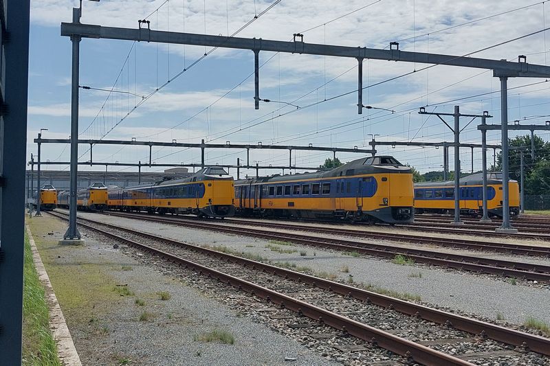 Van links naar rechts staan de 4043, 4204, 4019, 4021 en helemaal rechts een onbekende ICM staan in Amersfoort. 7 augustus 2025. © TreinenInNederland.nl |