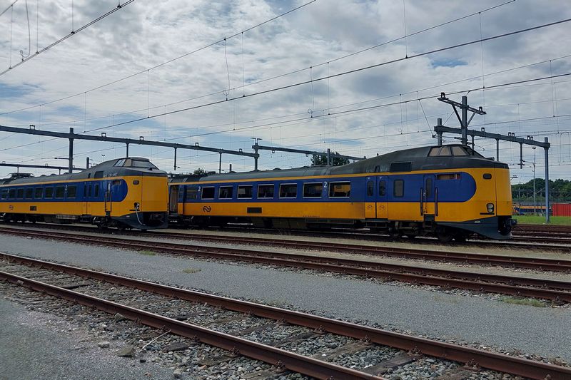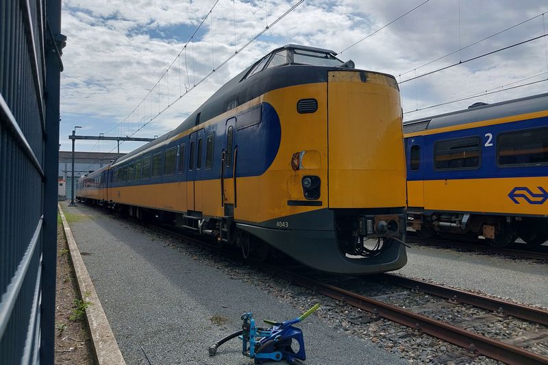 De 4087 staat tegen de middenbak van de 4021 aangerangerd. 28 juli 2024. © TreinenInNederland.nl |