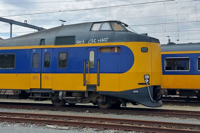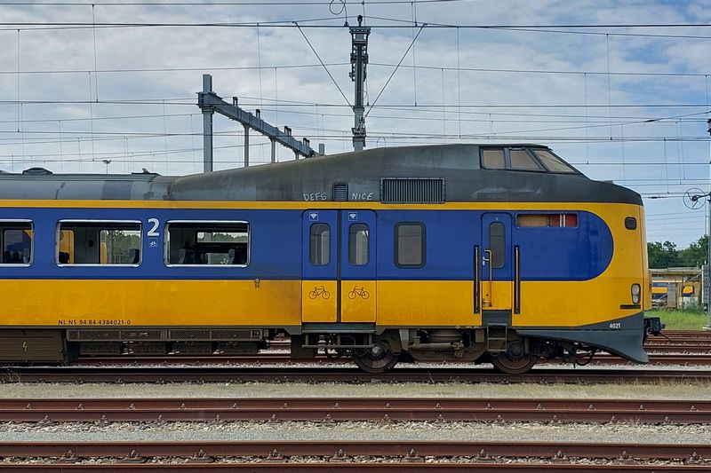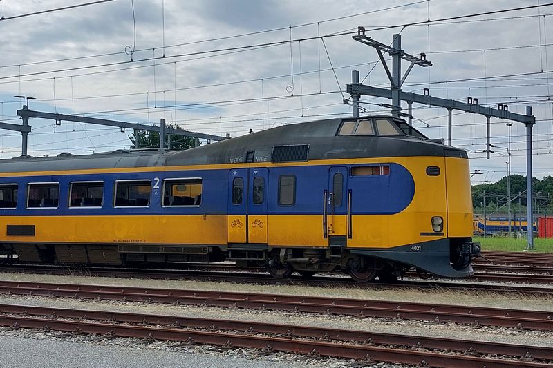 De 4011 staat naast een tussenbak van de 4021 in Amersfoort. 25 mei 2024. © TreinenInNederland.nl |