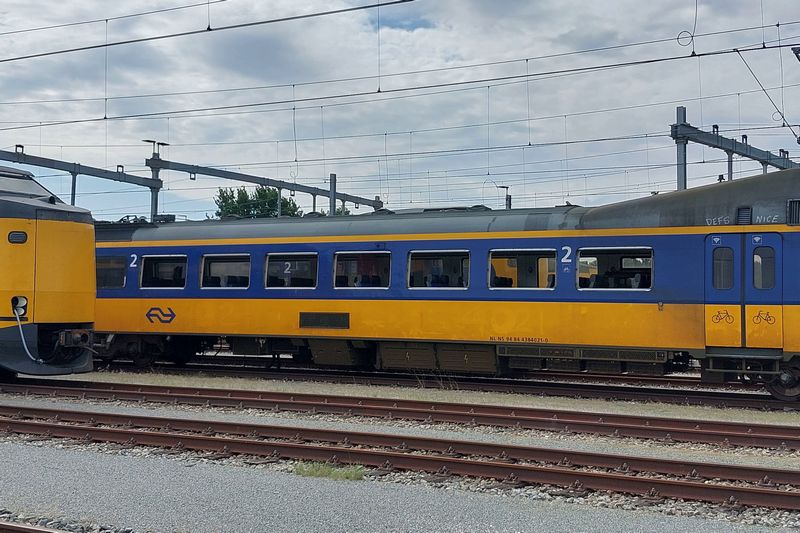 De middenbak van de ICM 4021 in Amersfoort. Verderop op hetzelfde spoor staan beide kopbakken van het treinstel. 28 juli 2024. © TreinenInNederland.nl |
