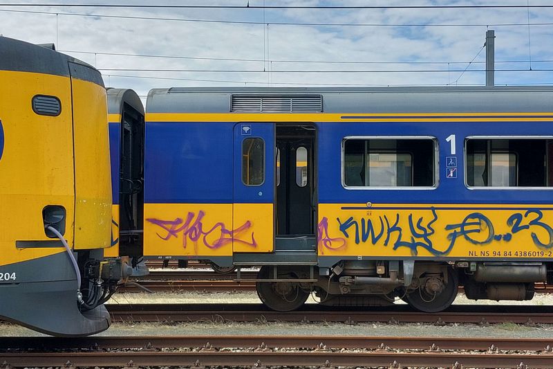 De SNG 2770 is voorzien van Technisch geleid vertrekproces om de Airport Sprinter te kunnen rijden. Het treinstel staat in Amersfoort naast ICMm 4014 die gesloopt gaat worden. 25 mei 2024. © TreinenInNederland.nl |