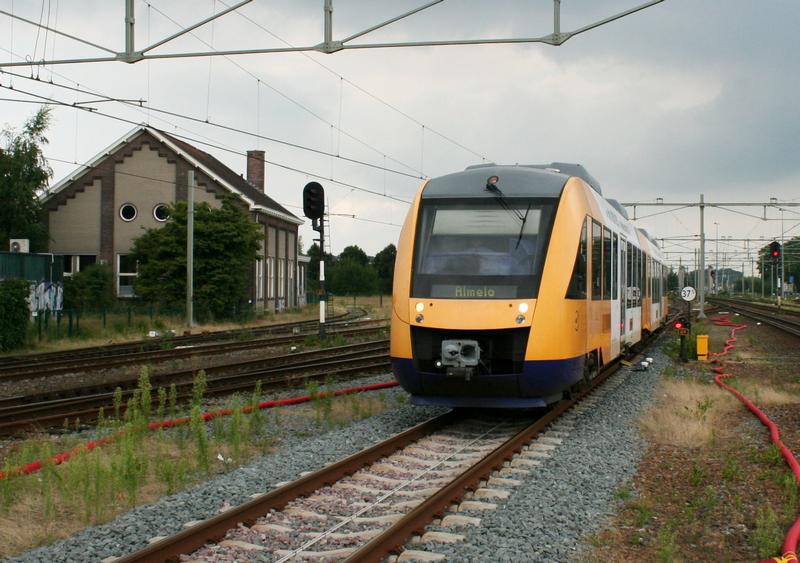 Syntus Lint 40 vlak voor binnenkomst in station Almelo. 2 augustus 2012. © TreinenInNederland.nl |