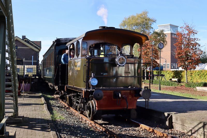 De MBS 2 staat met de HSM C 905 en andere rijtuigen in Haaksbergen langs het perron. Najaarsstoomdagen 2025, 18 oktober 2025. © TreinenInNederland.nl |