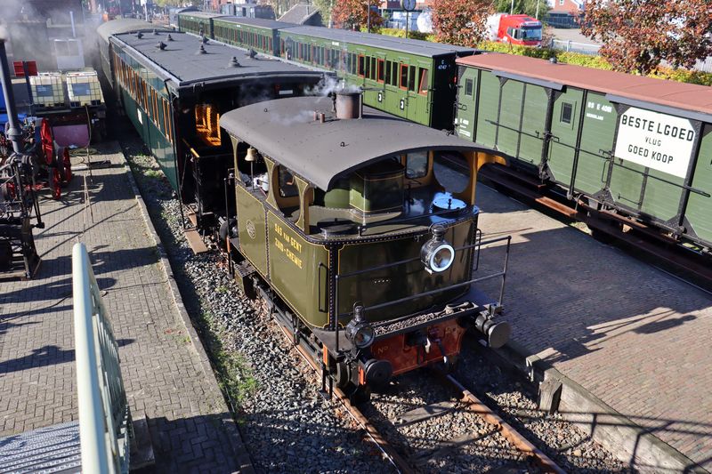 De MBS 2 rangeert in Boekelo naar de voorkant van de reizigerstrein die rechts op de foto te zien is. Najaarsstoomdagen 2023, 14 oktober 2023. © TreinenInNederland.nl |