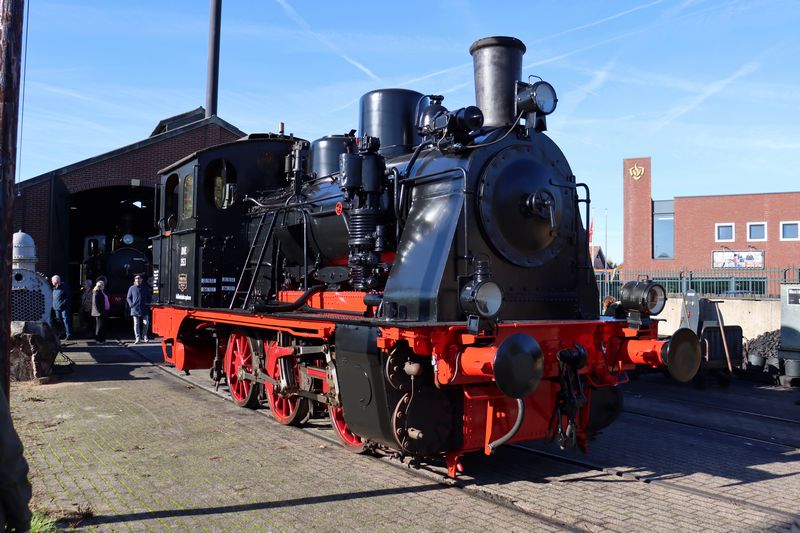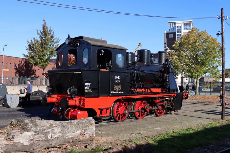 Speciaal voor de 100ste verjaardag van de DHE 353 besloten een aantal vrijwilligers om, naast hun standaardtaken, de DHE 353 geheel zwart-rood te verven. Deze mooie actie hebben de vrijwilligers ook zelf bekostigd. Tijdens de Najaarsstoomdagen stond de locomotief in Haaksbergen in het zonnetje tentoongesteld. Najaarsstoomdagen 2025, 18 oktober 2025. © TreinenInNederland.nl |