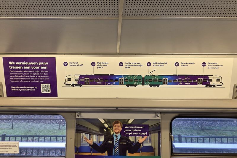 In de 904 is bestickering te zien met informatie over de renovatie van de andere treinstellen op de Valleilijn. 15 janauri 2026. © TreinenInNederland.nl |