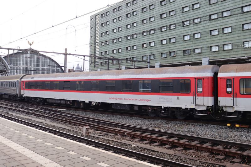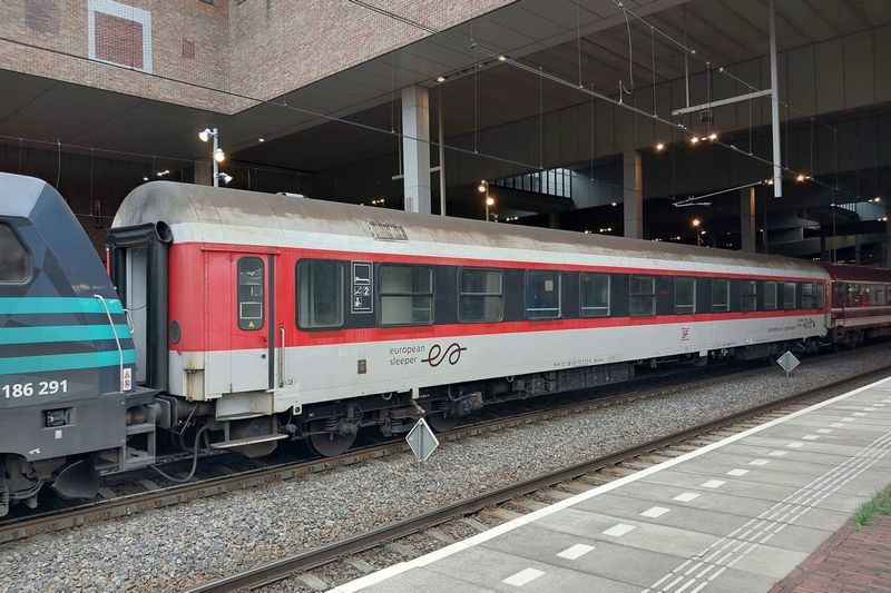 De TCS 186 291 staat met een omgeleide European Sleeper op station Breda te wachten om verder richting Brussel-Zuid te rijden. Op de foto is een rijtuig van het type Bcmh te zien met het UIC-nummer 51 56 05-70 512-5. 27 september 2024. © TreinenInNederland.nl |