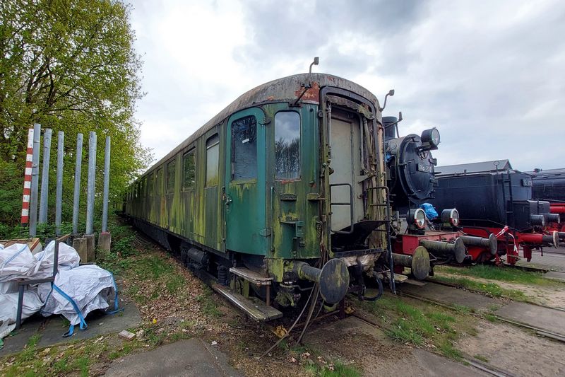 Bolkop ABC7301 staat op de opstelsporen naast de loods in Beekbergen opgesteld. 9 mei 2024. © TreinenInNederland.nl |