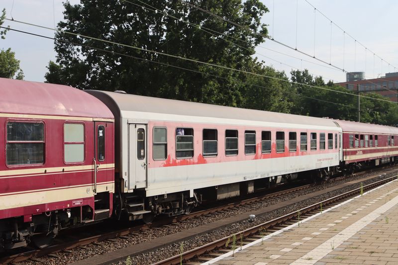 De TCS 101001 rijdt met de eerste Sziget Express van de dag en de Duitse BR101 103003 achterop vanuit Venlo door Eindhoven Centraal naar Utrecht Centraal en Bad Bentheim. Op de foto is een rijtuig van het type Bomdz236.9 te zien met het UIC-nummer 51 80 84-90 220-5. 14 augustus 2024. © TreinenInNederland.nl |