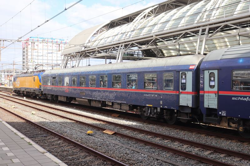 De NSI 6193 931 staat met een NightJet uit Zürich op zijn eindbestemming, Amsterdam Centraal. Op de foto is een rijtuig van het type Bvcmbz met het UIC-nummer 61 80 59-90 002-6 te zien.