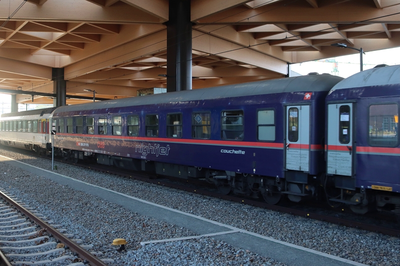 De NSI 6193 932 rijdt met de NightJet uit Zürich door Ede-Wageningen richting Amsterdam. Op de foto staat een rijtuig van het type Bvcmz met het UIC-nummer 61 85 50-91 019-3. 24 september 2024. © TreinenInNederland.nl |