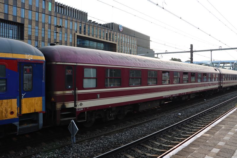 Een Euro Express-rijtuig van het type Bvcmz met UIC-nummer 61 80 50-71 232-1 in de European Sleeper in Utrecht. 9 juni 2025. © TreinenInNederland.nl |